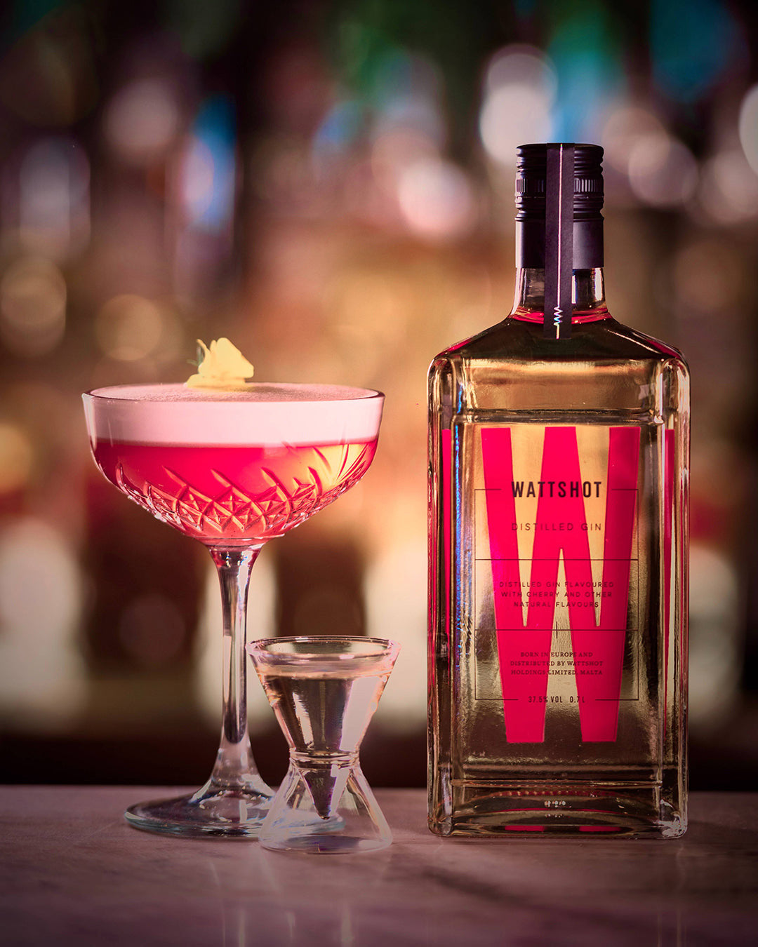The cherry-flavoured WATTSHOT is gin-based, featuring a London dry gin crafted with eight botanicals and 5% cherry juice.
